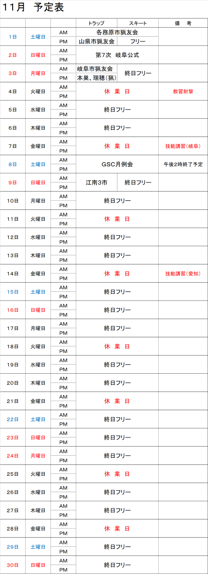 月間日程表